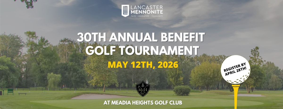 Join us for the 30th Annual Lancaster Mennonite Golf Tournament to be held at Meadia Heights Golf Club, 402 Golf Road, Lancaster, on Tuesday, May 12, 2026. All event proceeds support Christ-centered education at Lancaster Mennonite.