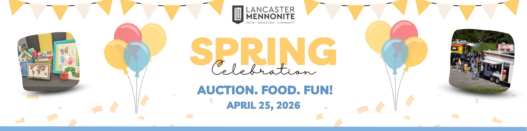 The Lancaster Mennonite Spring Celebration is always a highly anticipated event for students, their families, and the broader community. This fun-filled day features kids activities, a benefit auction, plant and bake sale, delicious concessions, a collection of Lancaster’s favorite food trucks and more.