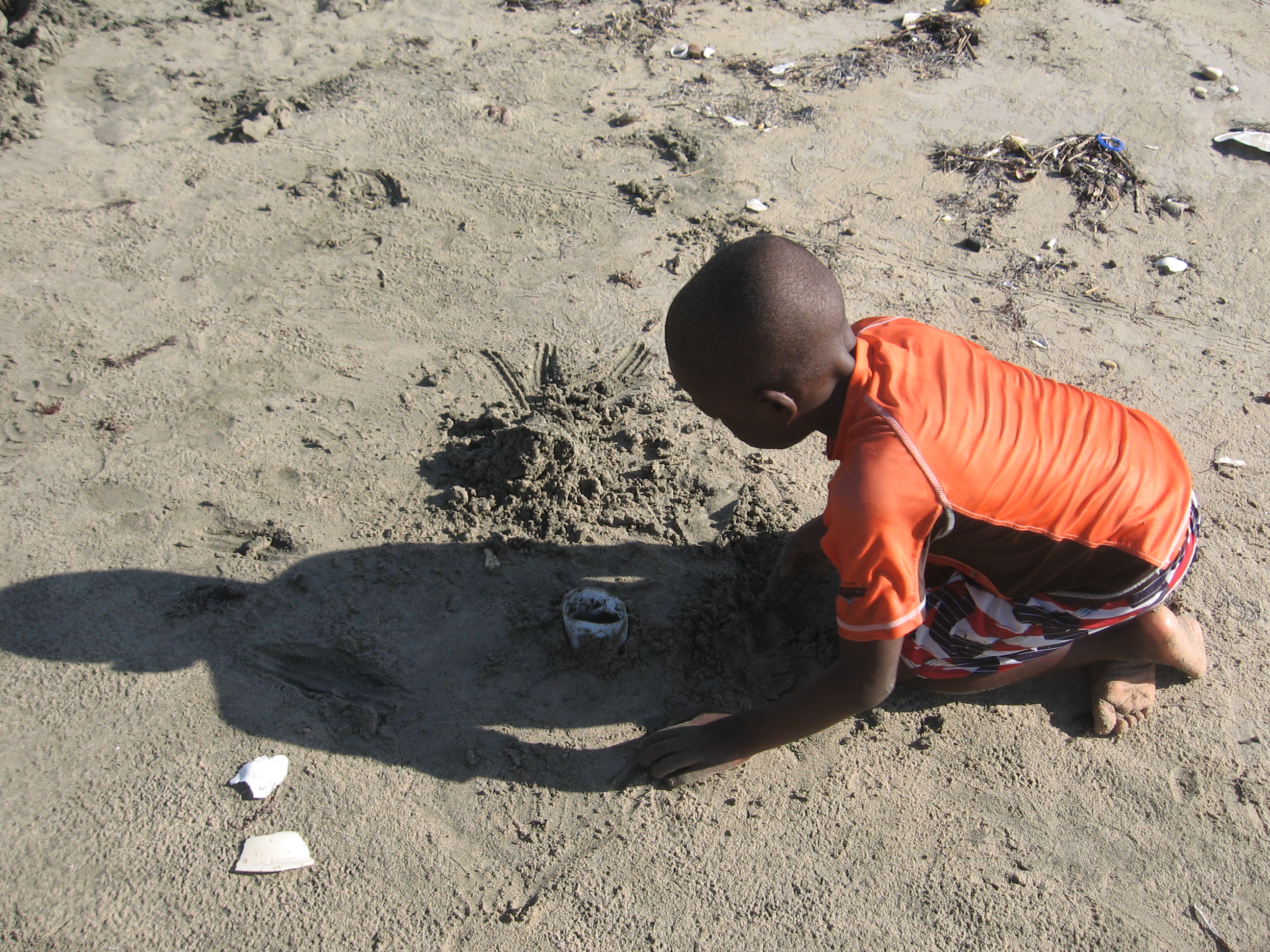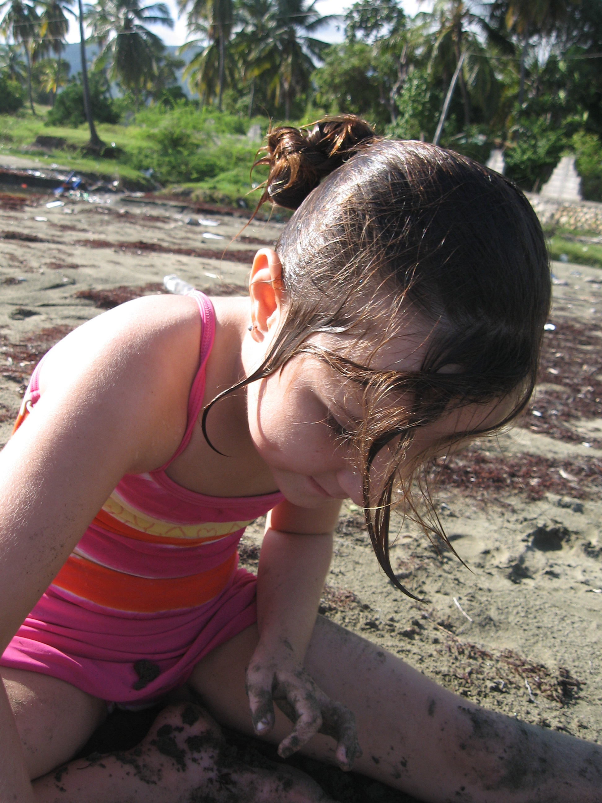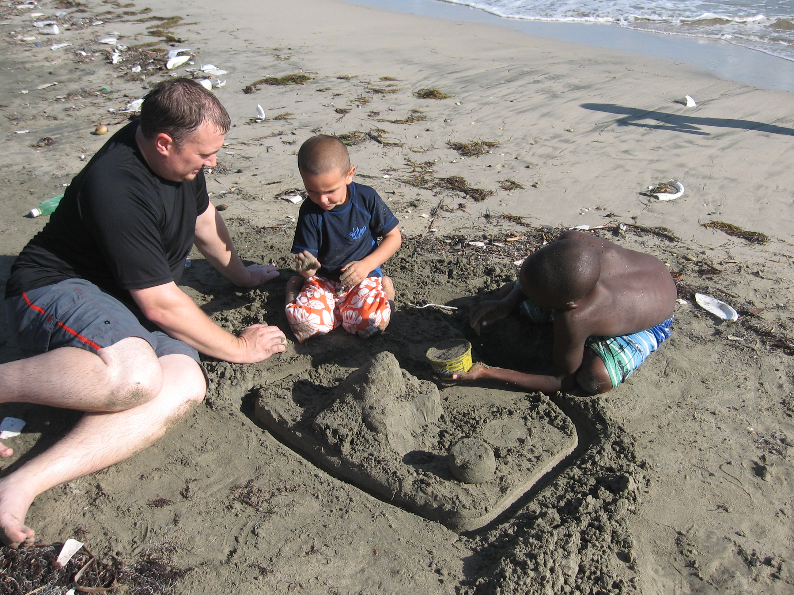 The beach was beautiful… the view, spectacular blue water. At the same time there were also piles of trash everywhere … and livestock. This was definitely something to get used to. There were also the vendors who were determined to sell us their various souvenirs, art and food. We had a blast playing in the ocean with the kids, making sand creations, flying kites and just hanging out.