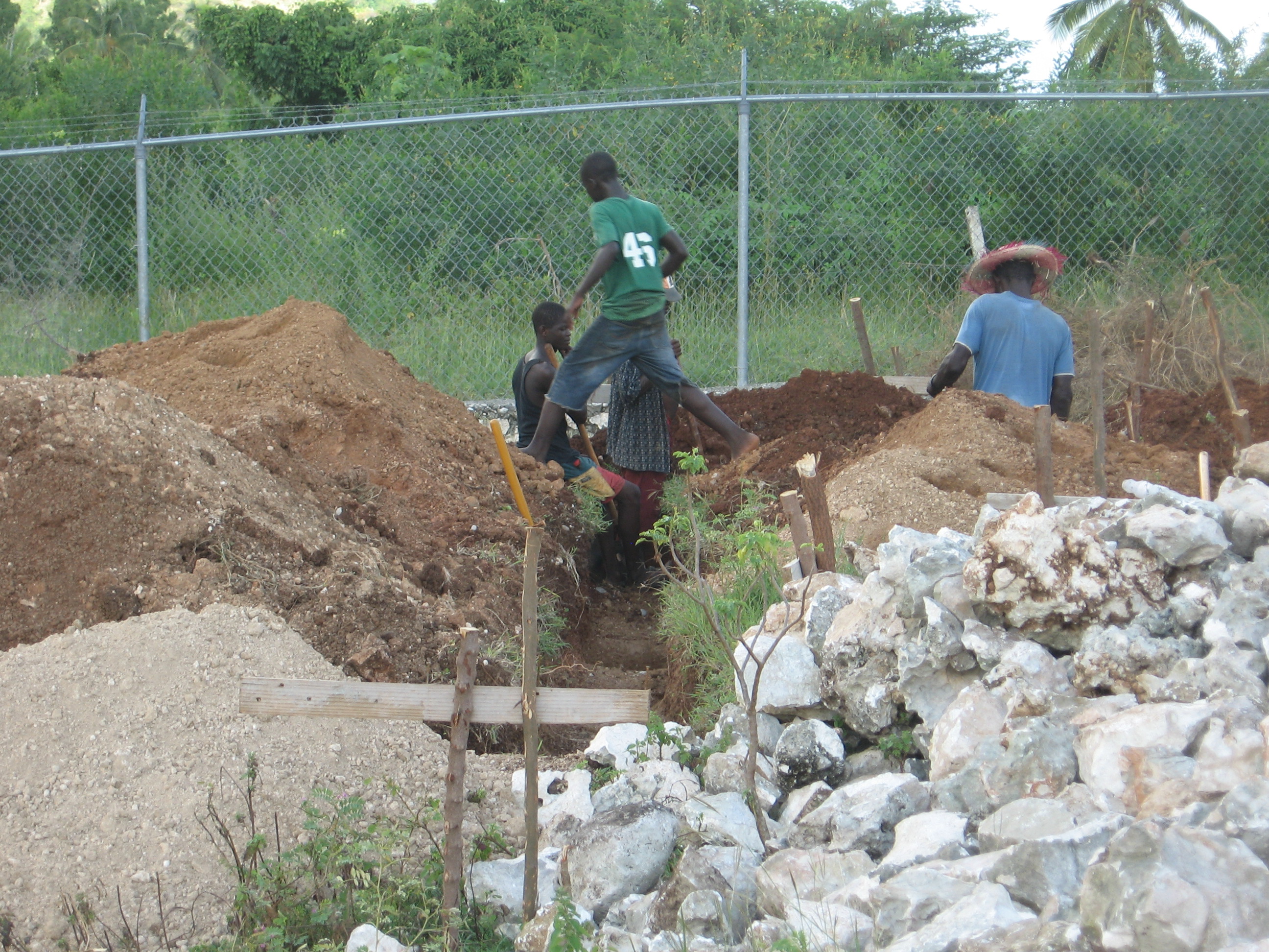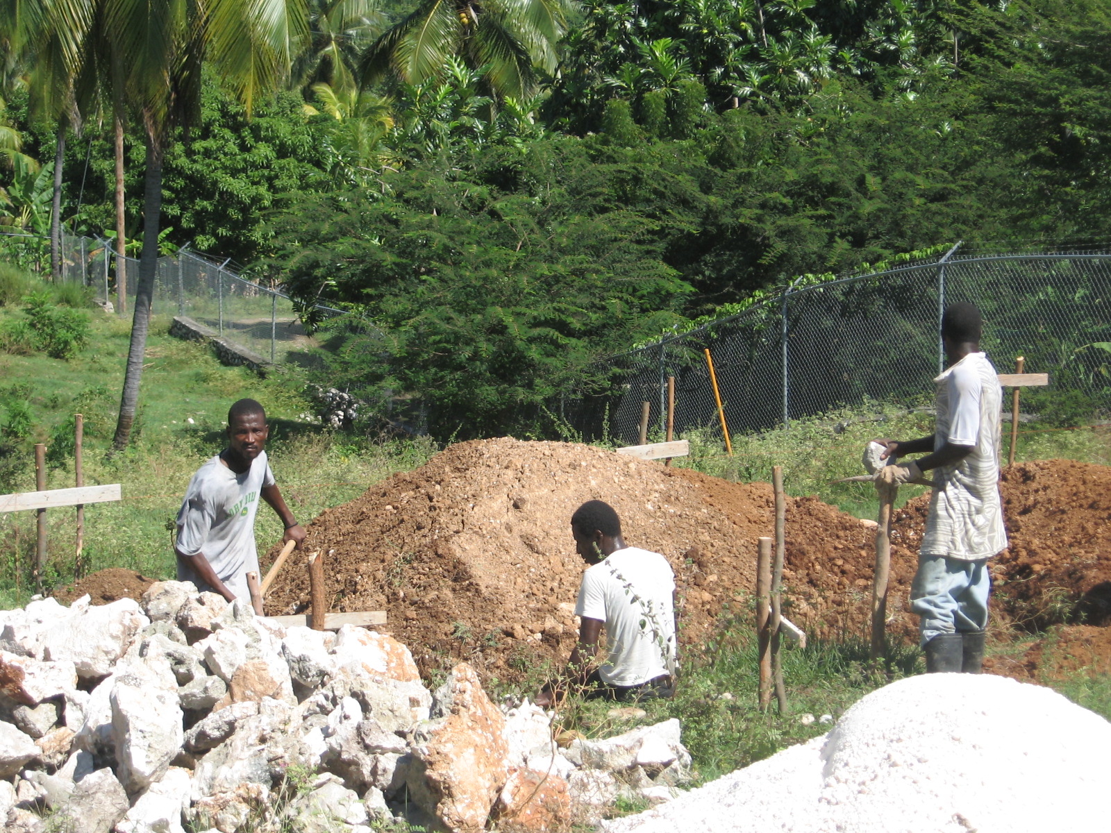 STACEY GAGNE – Today was day one of the building project on Joy in Hope’s land. Joy in Hope has 17 acres of land on the ocean in Jacmel, Haiti. Our team has the privilege of helping to build the first building on the land! Today we worked with a team of 15 – 20 men from Projet Connect . After the earthquake, Joy in Hope helped provide several families from one of the tent camps with rental homes. As part of a work for housing project, Joy in Hope has paid for their rent for the year with the agreement that the Haitians will help with various Joy in Hope projects to be eligible for another year of paid rent.