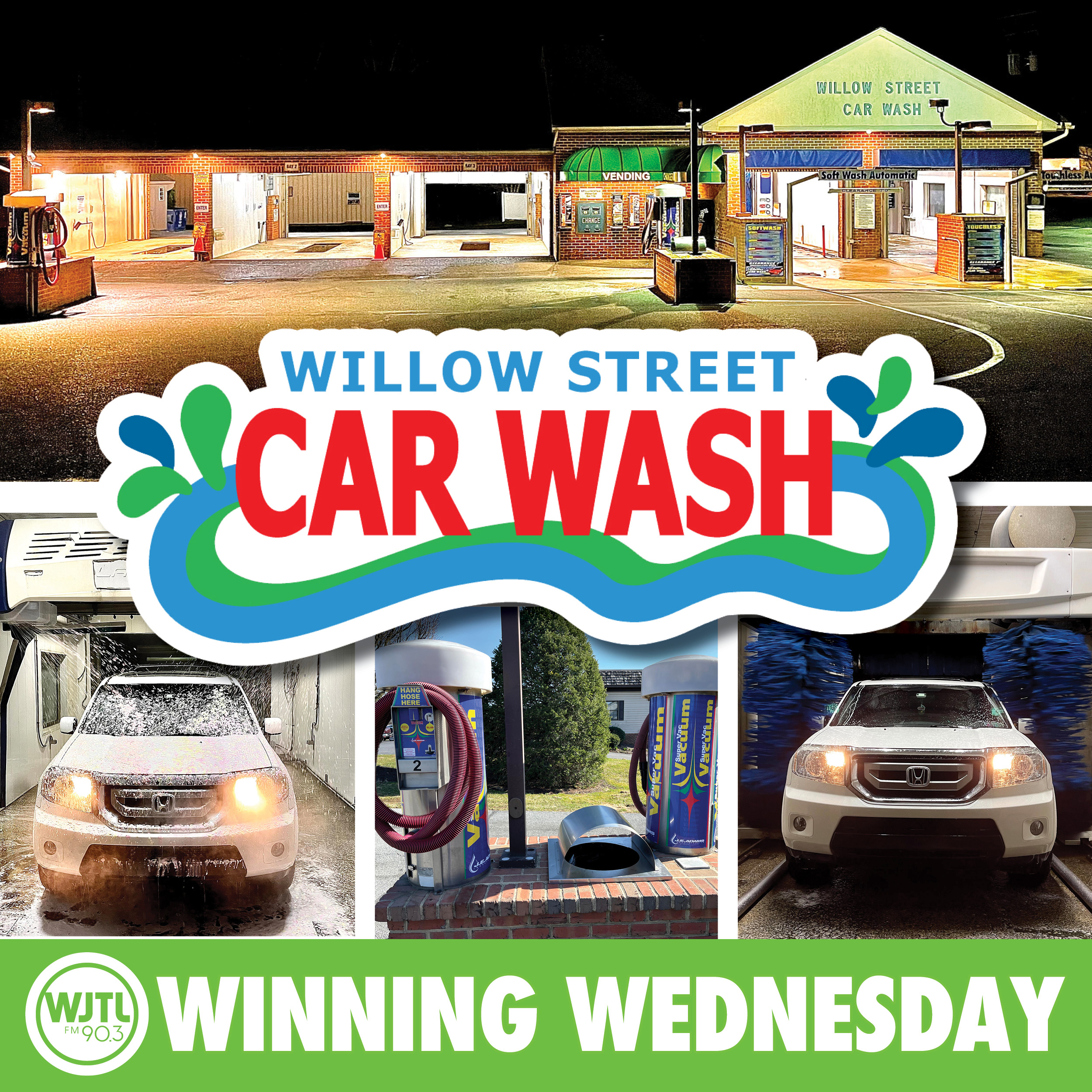 We’re celebrating Winning Wednesday, March 11th, by giving away $20 gift cards to Willow Street Car Wash, offering monthly memberships, single-wash purchases, and gift cards through their mobile app.