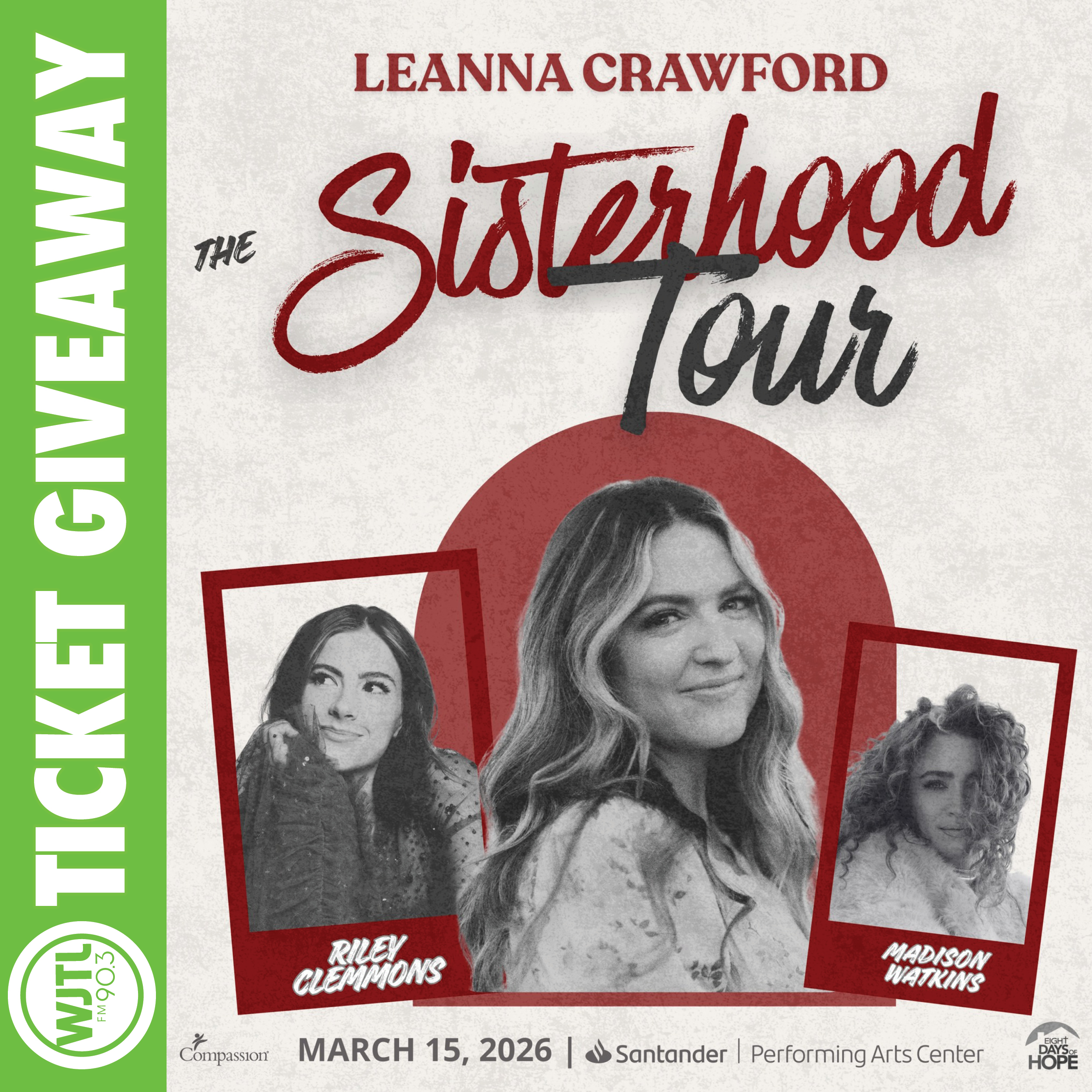 The Sisterhood Tour featuring Leanna Crawford and special guests Riley Clemmons & Madison Watkins is coming to Santander Performing Arts Center on Sunday, March 15th.