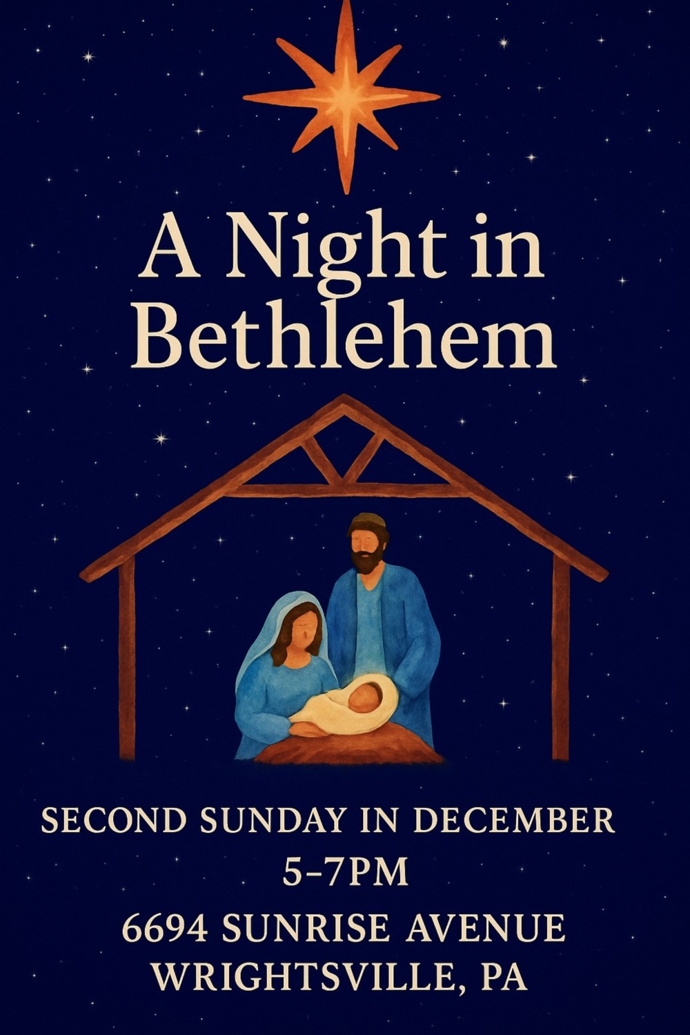 Susquehanna Grace Community Church 6694 Sunrise Ave, Wrightsville, PACome enjoy a glimpse of the Christmas miracle, the night Jesus took his earthly form, born in a manager. Enjoy a walk by candle glow through a manger scene with live animals and characters reenacting the greatest miracle of all time, while the Host of Angels sing praise to our Lord Jesus. We will have more ยป