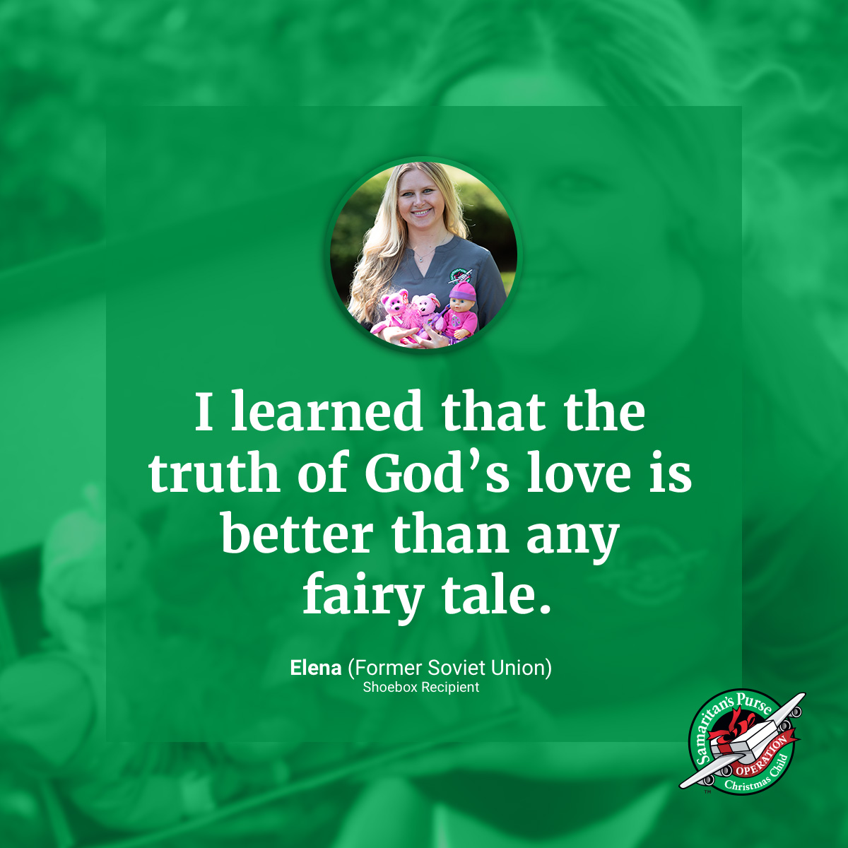 Elena was 8 years old when she and her sister were moved from an abusive, poverty-stricken home into an orphanage in the Former Soviet Union. At a time when she was feeling unloved, she was handed an Operation Christmas Child shoebox gift. It was the first gift she had ever received. Along with her shoebox […]